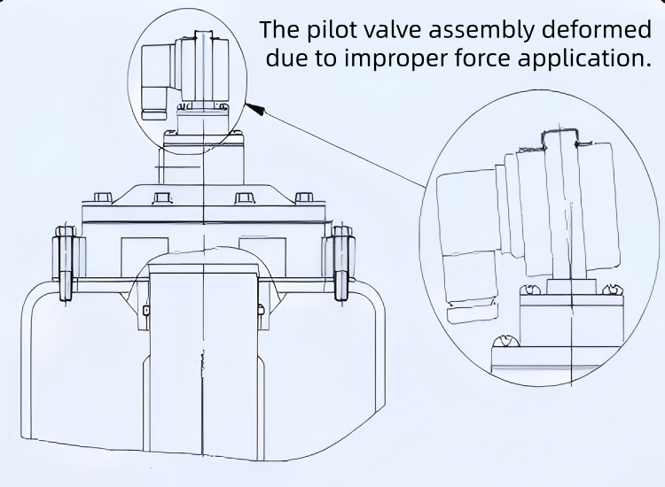Sumontavus oro rezervuarų, prijungtų flanšų ar pūtimo vamzdžių suvirinimo darbai yra draudžiami, kad būtų išvengta suvirinimo purslų ar membranų pažeidimų dėl aukštos temperatūros. Atsargiai elkitės gabendami ar montuodami, kad nepažeistumėte solenoidinio vožtuvo valdymo bloko smūgio, nes gali deformuoti ritės įvorę, užstrigti judančiam kotui ir neleisti vožtuvui veikti.